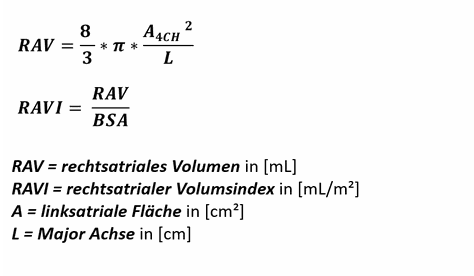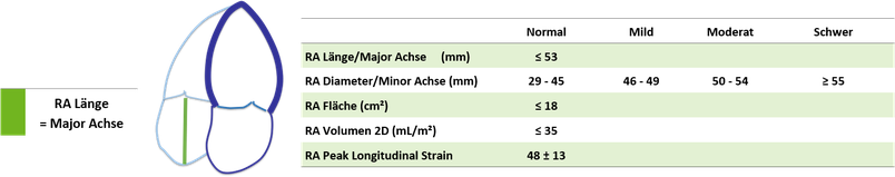 Quantifizierungsmethoden und Normalwerte zum rechten Vorhof sind in den Leitlinien zur Quantifizierung der Herzkammern von Lang et. al. (2015 JASE) dargestellt. Zusätzlich existiert eine eigene auf die rechte Herzseite fokussierte Leitlinie von Rudsky et. al. (JASE 2010).